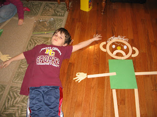 Anns a’ chròileagan, tha sinn ag ionnsachadh faclan agus abairtean mu dheidhinn an taighe, an teaghlach, ciamar a tha sinn a’ fearachdainn agus pàirt dhen chorp. Thoisich sinn cur-seachadan ùra. Seo “Matman” neo “Fear a’ Bhrat.” Dh’fhaodadh dhan chloinn Fear a’ Bhrat a chur ri chèile pìos air phìos: dà shùil, sròn, beul, cluasan, gairdeanan, casan agus mar sin air adhart.